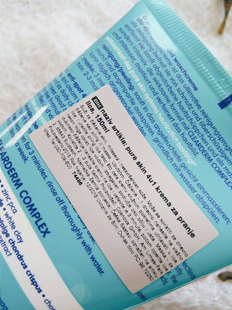 Ova stvar u sebi ima neke plave kao čestice , ja ga nanesem na lice, kao kremu, ostavim da stoji nekih 2-3 minute i isperem vodom ili onim vaticama.